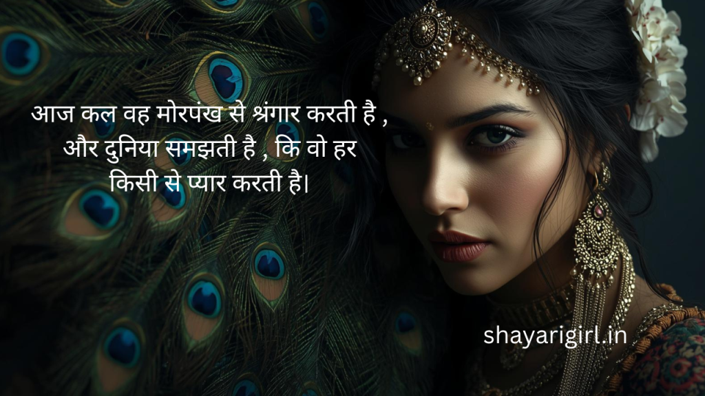 आजकल वह मोर पंख से श्रंगार करती है , और दुनिया समझती है , कि वो हर किसी से प्यार करती है।